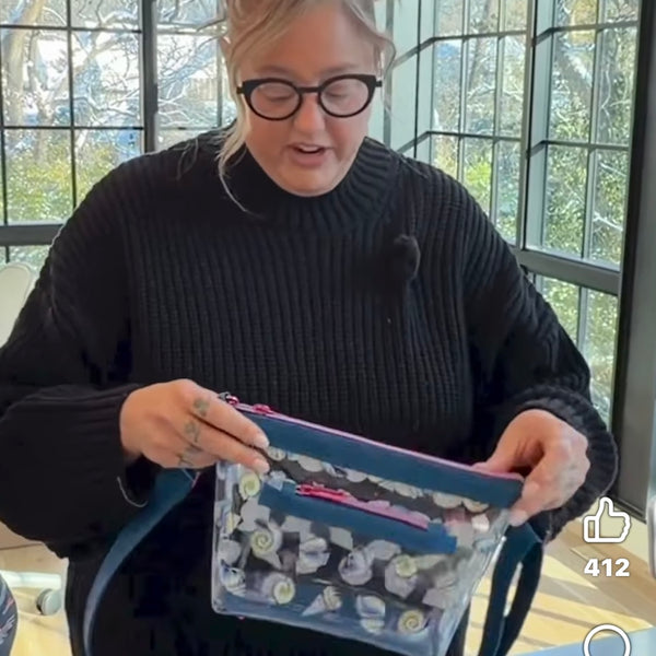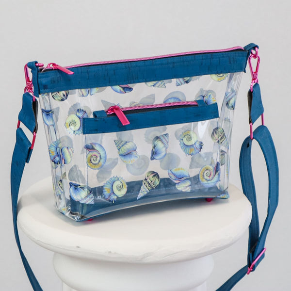 Elevate your event experience with the Ruth crossbody bag. Whether you’re heading to a concert or sporting event, this transparent bag will keep your belongings secure, yet visible, allowing you to breeze through security checks. This bag has a roomy interior, contrasting accents, and optional features to suit your style. The name of this pattern was inspired by the legendary baseball icon, Babe Ruth. Finished size: 11" wide, 7" high, and 3" deep. 27.9cm wide, 17.8cm high, and 7.6cm deep
